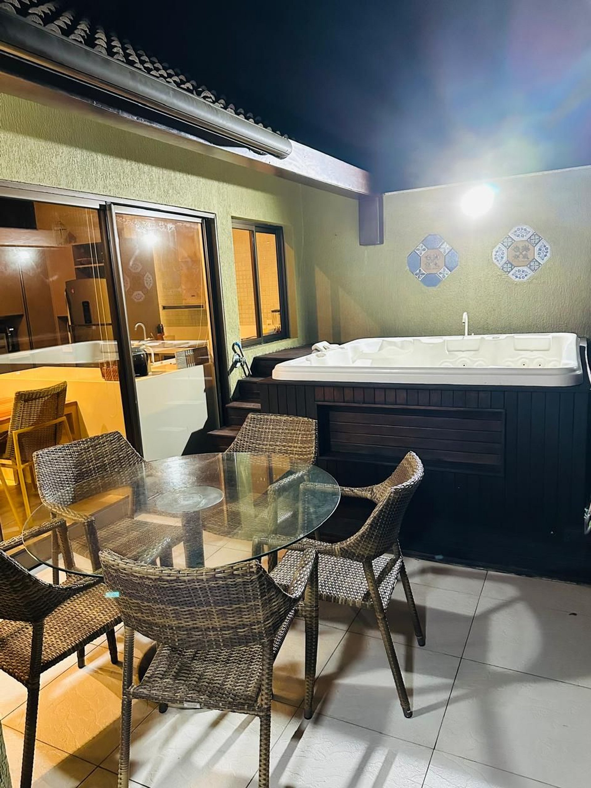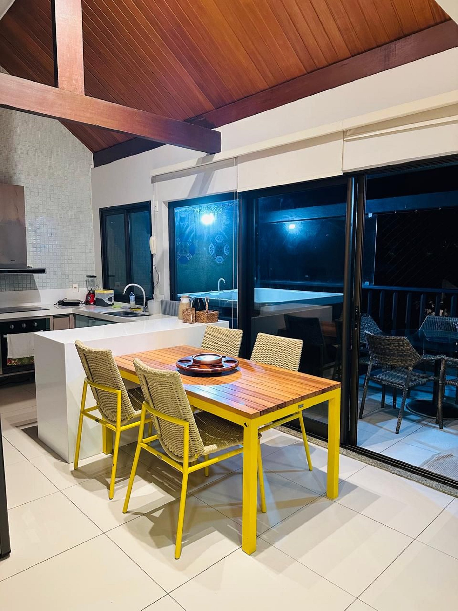 Andar superior: sala, cozinha, BWC social, varanda com Jacuzzi