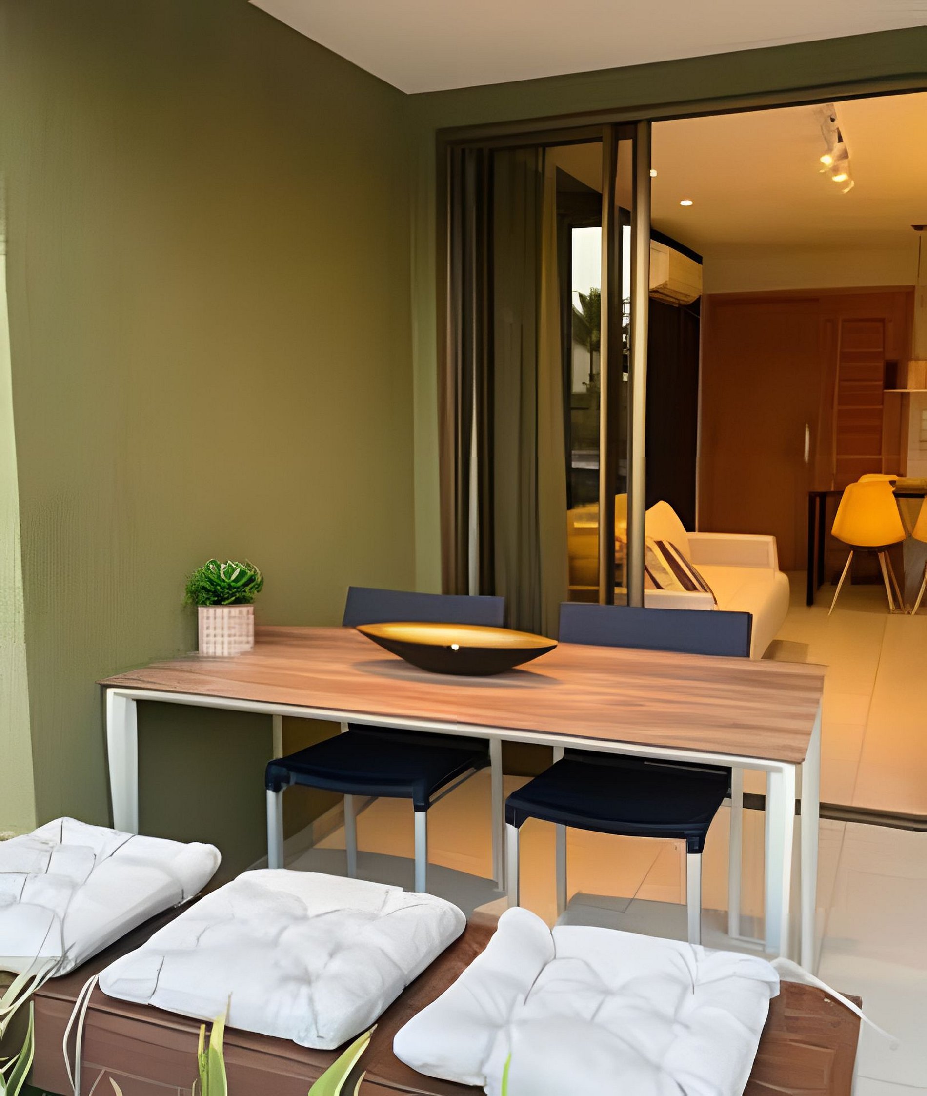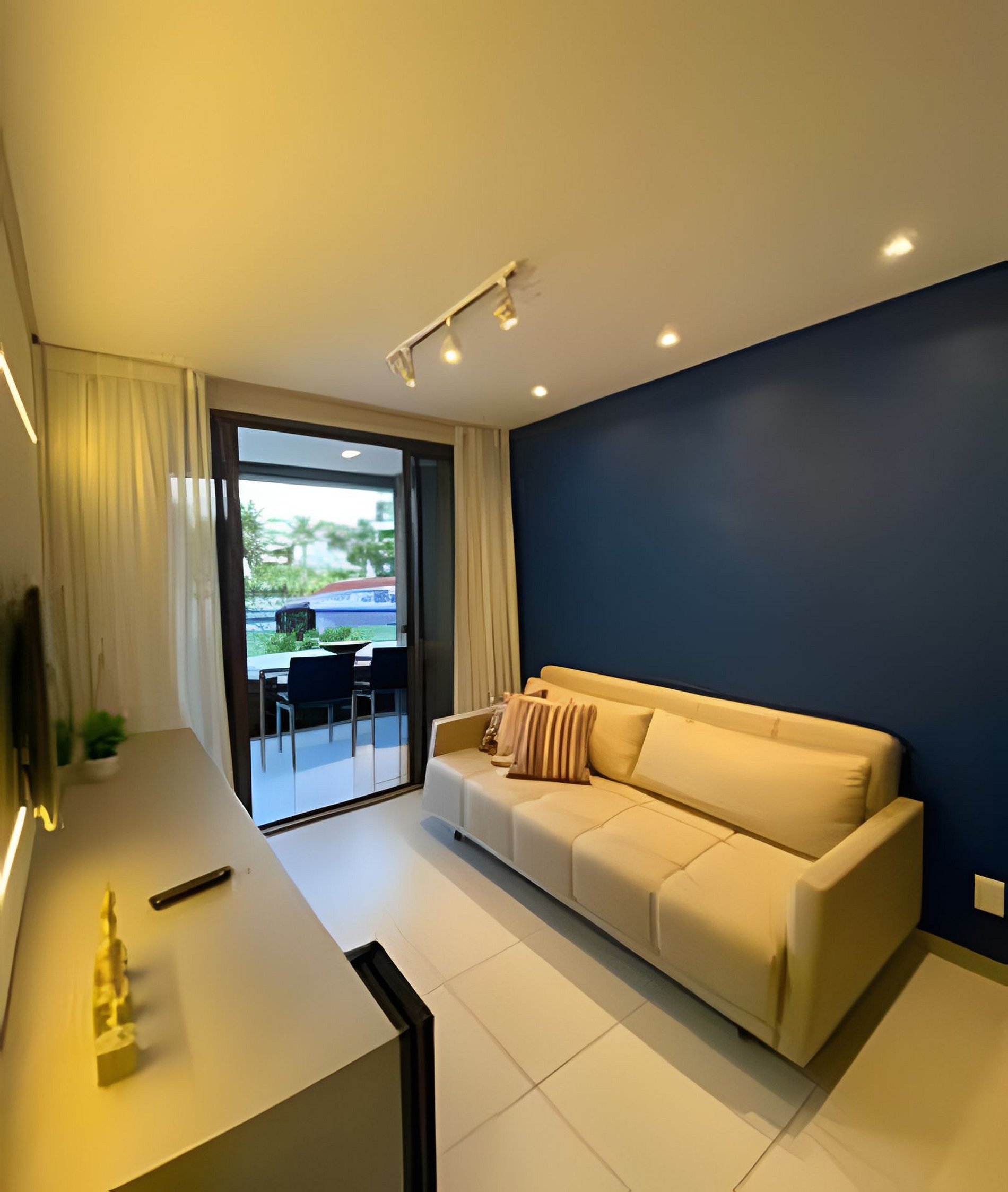 Flat Térreo no Condomínio Malawí Muro Alto Beach Houses. Nascente e próximo da piscina, é ideal para famílias e casais (máximo 2). Dispõe de 2 quartos, sendo 1 suíte, que acomodam até 6 pessoas (adultos e crianças) sendo 2 no sofá cama na sala. Dispõe de varanda, sala com ar condicionado e Tv, cozinha completa (geladeira c/freezer, microondas, gelágua, cafeteira, utensílios, talheres, louças, panelas, copos). Estadia oferece ainda enxoval completo. Acesso à internet (wifi).