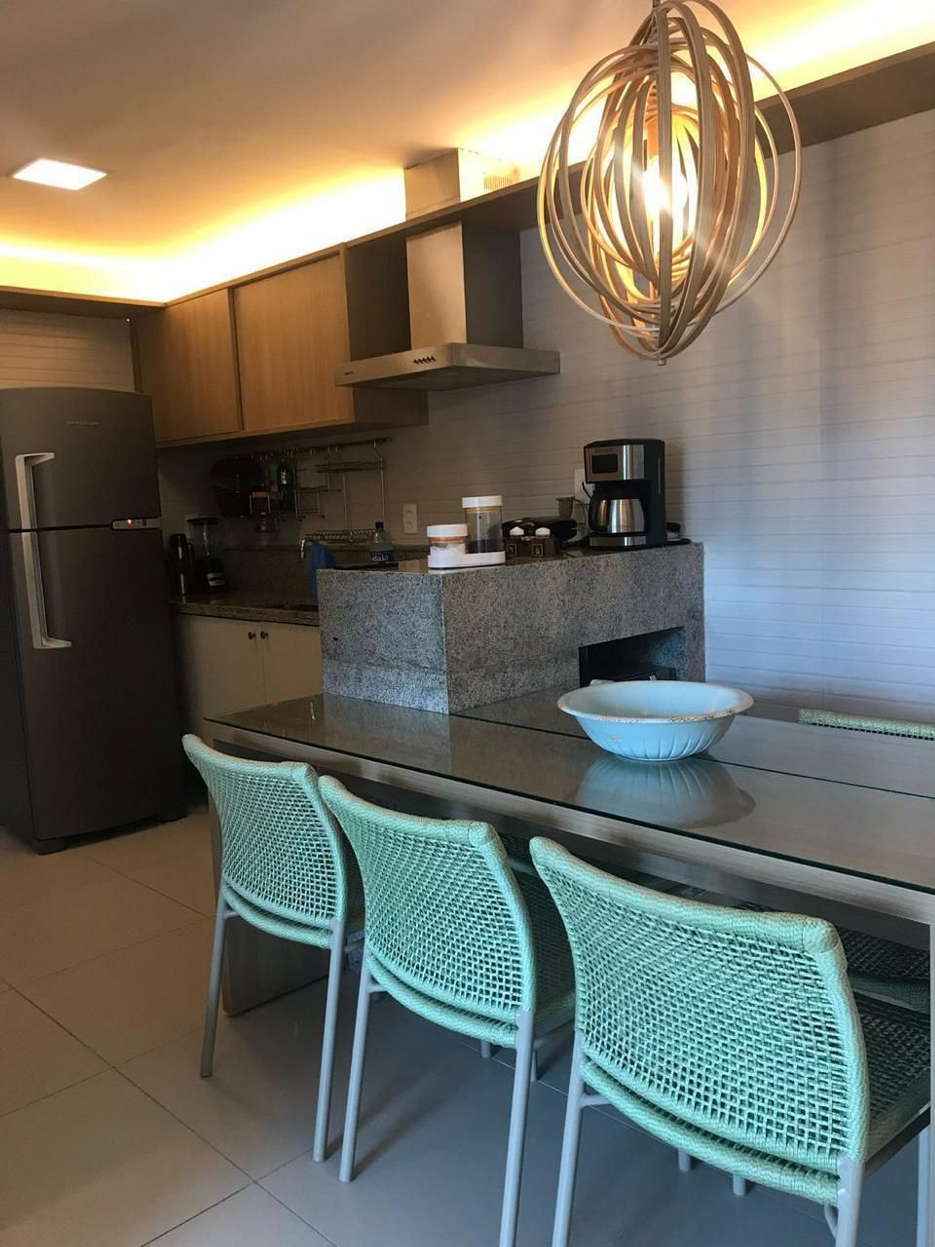 Cozinha (cooktop, geladeira com freezer, micro-ondas, forno, airfryer, utensílios, louças, talheres, copos e taças).